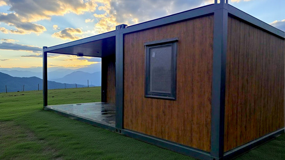 Képzeld el, ahogy a meleg diófa-mintázatú falak ölelésében reggeli kávéd kortyolod a fedett teraszon, miközben a zöld pázsit és a vízparti panoráma nyújt energiát a napodhoz. Ez az L-alakú, 36 m²-es modulház minden négyzetcentimétere a te nyugodt otthonod lehet – legyen az inspiráló home office, pihenősziget vagy vendégház.